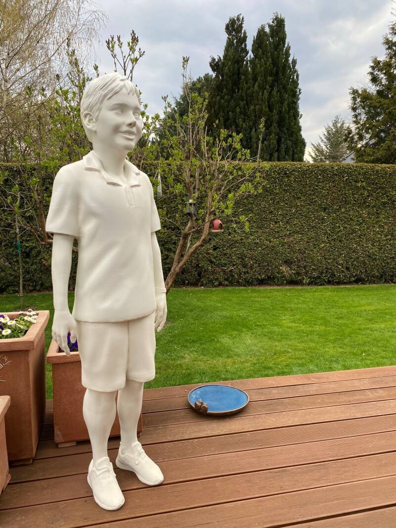 13. August 2021 Heute durften wir unsere lebensgroße Kunststoff-Skulptur unseres lieben Sohnes Maurice (s.links) in Farbe vom Airbrush-Designer Mario Brand (www.airbrushdesign.berlin) fertig abholen. Sehen sie bitte links selbst. Eine excellente, sehr detailreiche Arbeit, die wirklich mit Liebe ausgeführt wurde und unsere Figur mit Leben erfüllt. Es wäre fast als stünde er 1:1 da. Wir lieben Maurice ohne Ende, das was geschehen ist können wir nicht rückgängig machen, aber wir arbeiten an mehr als nur der Gegenwart. Ich stehe in seiner Schuld.